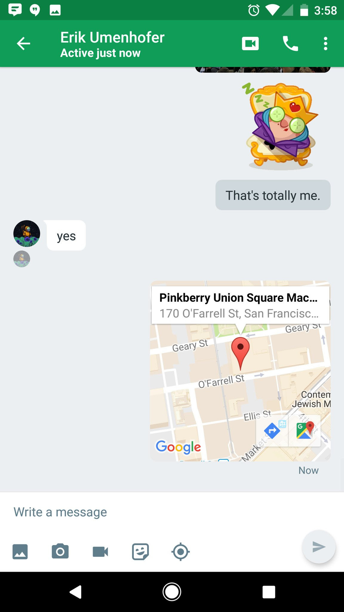 Bottom line: For now, Hangouts is basically a required app if you're planning to stay connected in the Google-verse. We're not sure where Google is taking it (some are expecting it to see it become the next prized messaging app of the enterprise), but there are definitely more people using it than Allo or Duo.