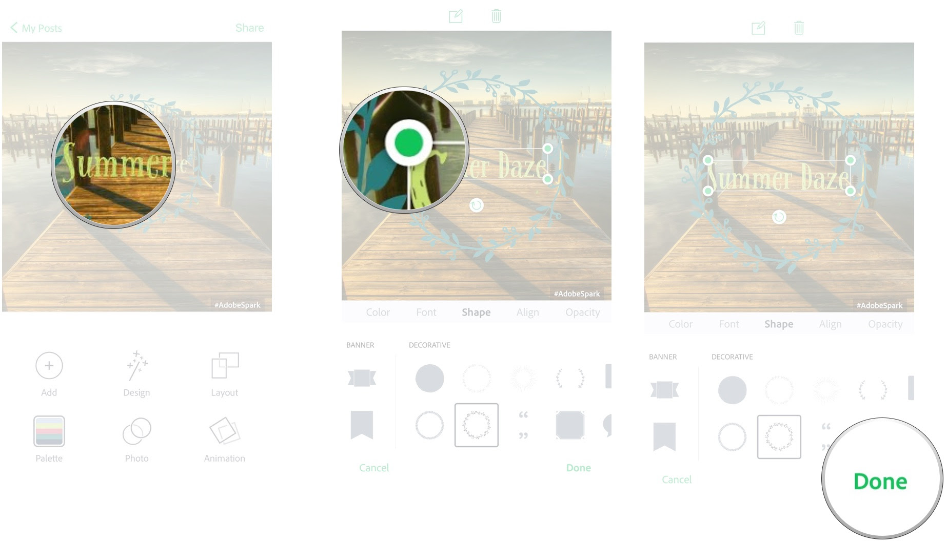 - Tap and drag on the green marker at the corner of the text box to adjust the size.